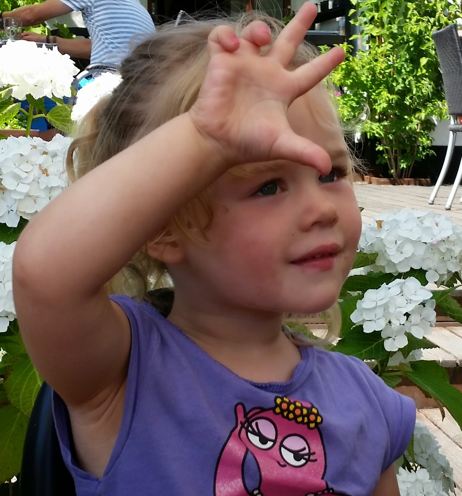 Frida 3 år. Vi var så heldige at være i sommerhus i Bratten ved Frederikshavn med pigerne og deres forældre i sidste uge med det vidunderlige vejr. Her holdt Frida fødselsdag.